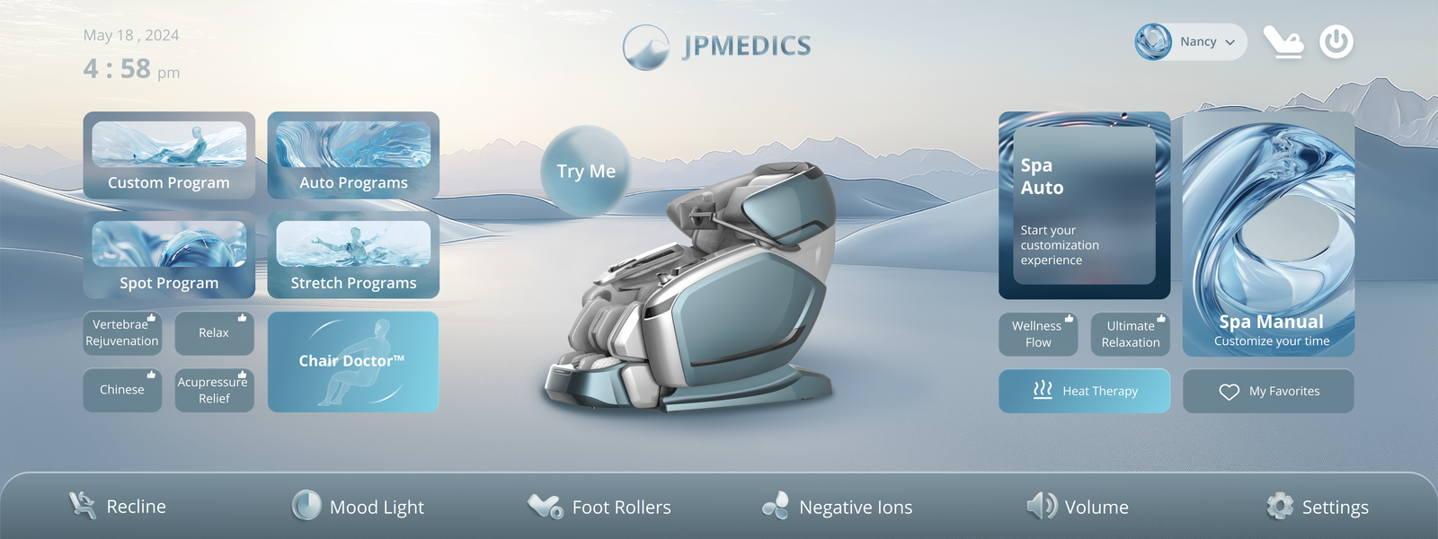 With the industry-leading touch screen, a higher level of interactivity is provided, allowing users to take greater control of their massage experience.